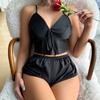 2 PCS Satin Summer V-Neck Women's Split Slings Pants Pajamas Set