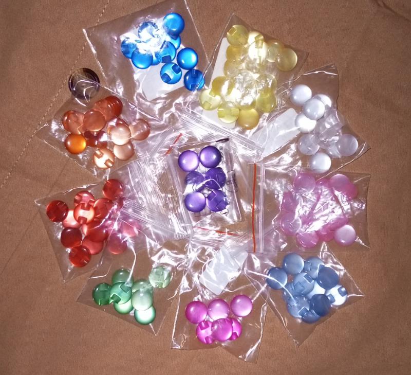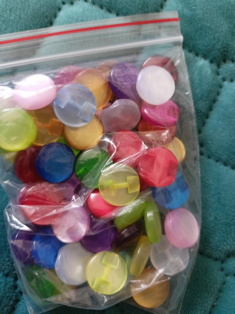 The buttons are small, not suitable for garments. Only for crafts. Not well thought out. There is one purple, but two orange and two blue. Decide for yourself whether it's worth buying