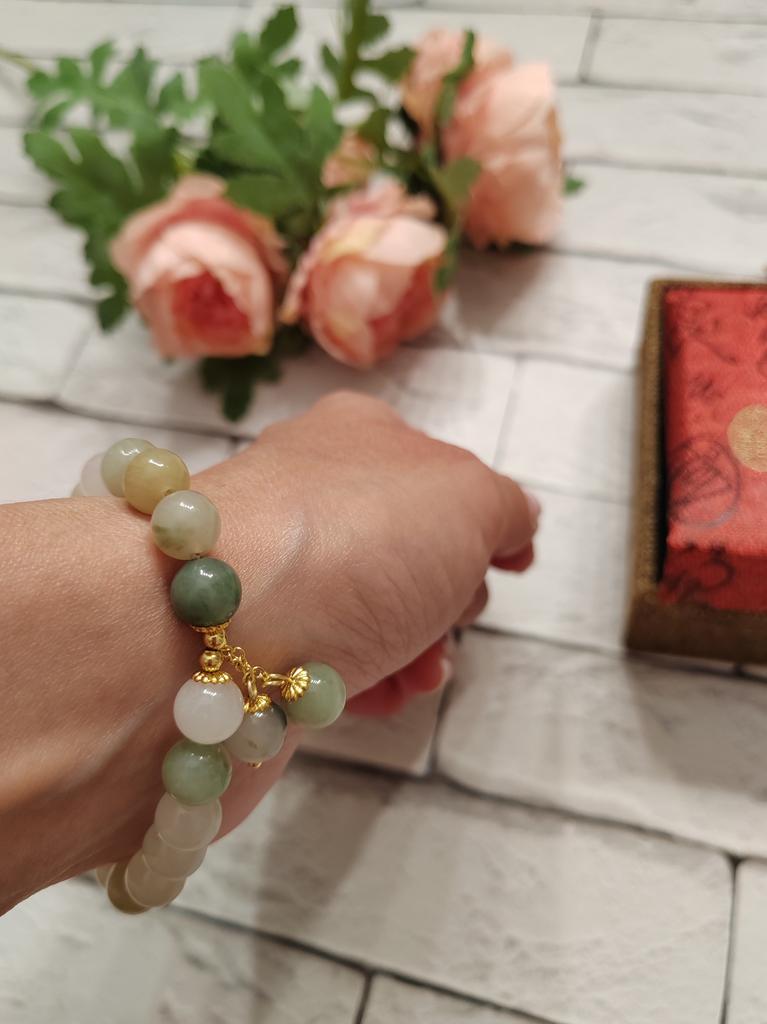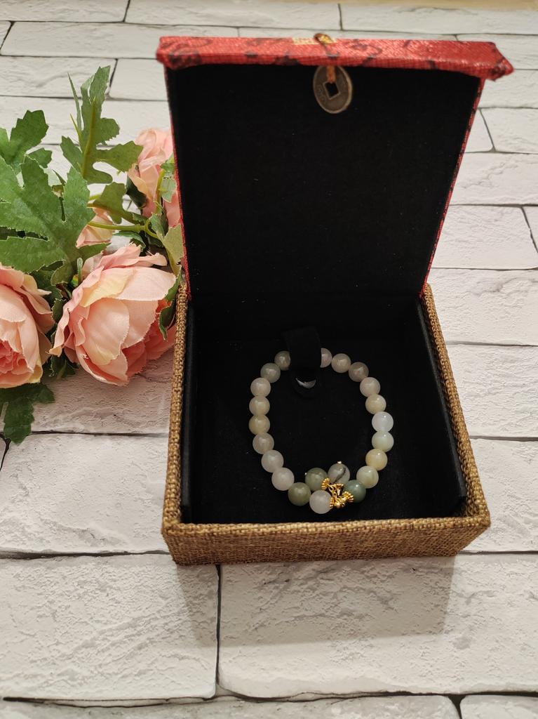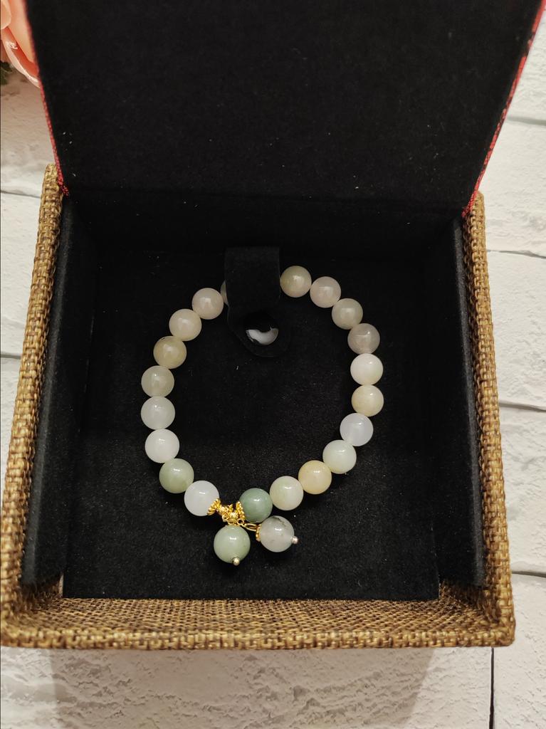 Jade bracelet 💗💗💗 The amazement when I saw the bracelet was incredible: starting with the box which is wonderful!!!! Inside is a bracelet with magnificent colors. It is true that the bracelet has a certain cost but the product is worth it because it is wonderful and luxurious!!! Jade is an auspicious thing, symbolizing peace, health and happiness and they say wearing it will bring you luck If you want to make a gift for someone you love or for yourself, I recommend it!!!! The package arrived perfectly packaged and intact in 3 weeks.