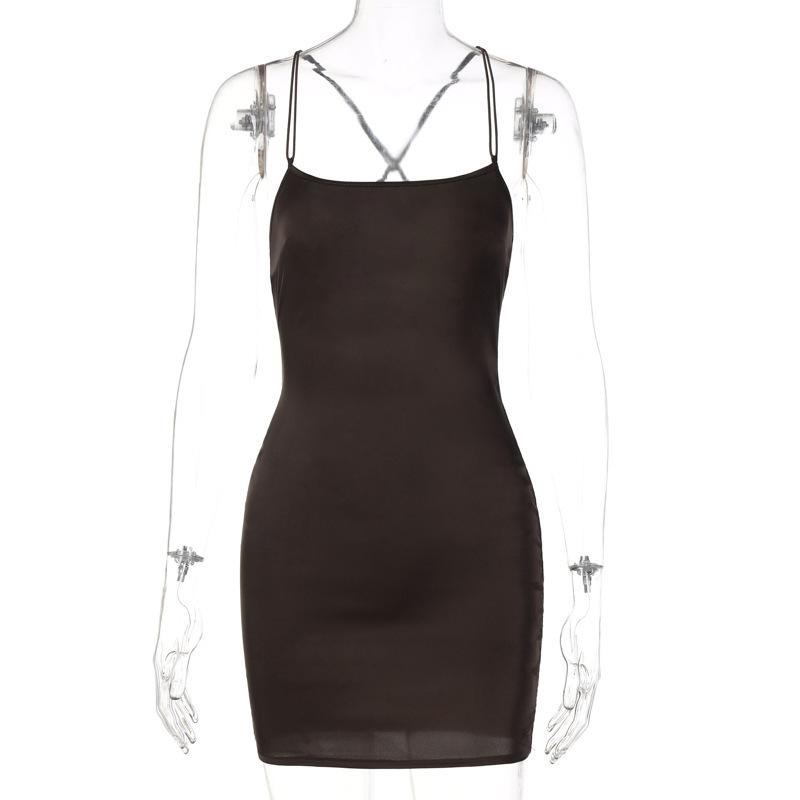 Cross Border European and American Women's Summer Dress Satin One Line Neck Sexy Revealing Backpack Buttocks Dress