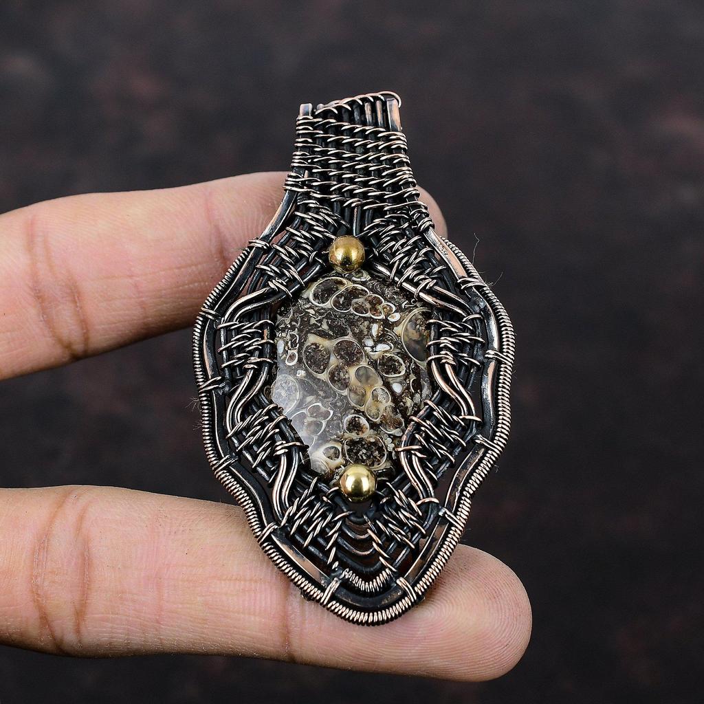 Turritella Agate Pendant Copper Wire Wrapped Pendant Handmade Pendant Wire Wrapped Gemstone Jewelry Unique Copper Jewelry Anniversary Gifts