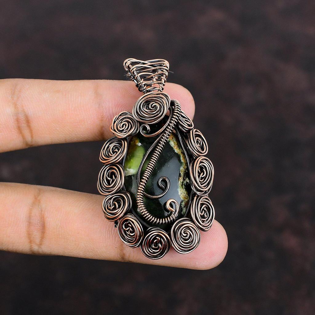 Australian Chrome Chalcedony Pendant Copper Wire Wrapped Pendant Handmade Copper Jewelry Gemstone Pendant Gift For Him Healing Stone Jewelry