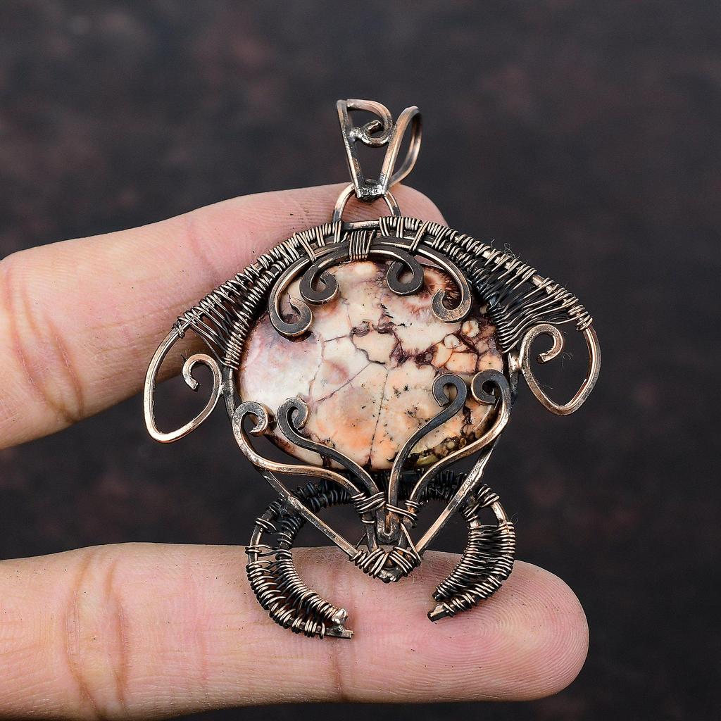 Birds Eye Jasper Pendant Copper Wire Wrapped Pendant Copper Jewelry Handmade Pendant Wire Wrapped Gemstone Jewelry Tortoise Pendant For Gift