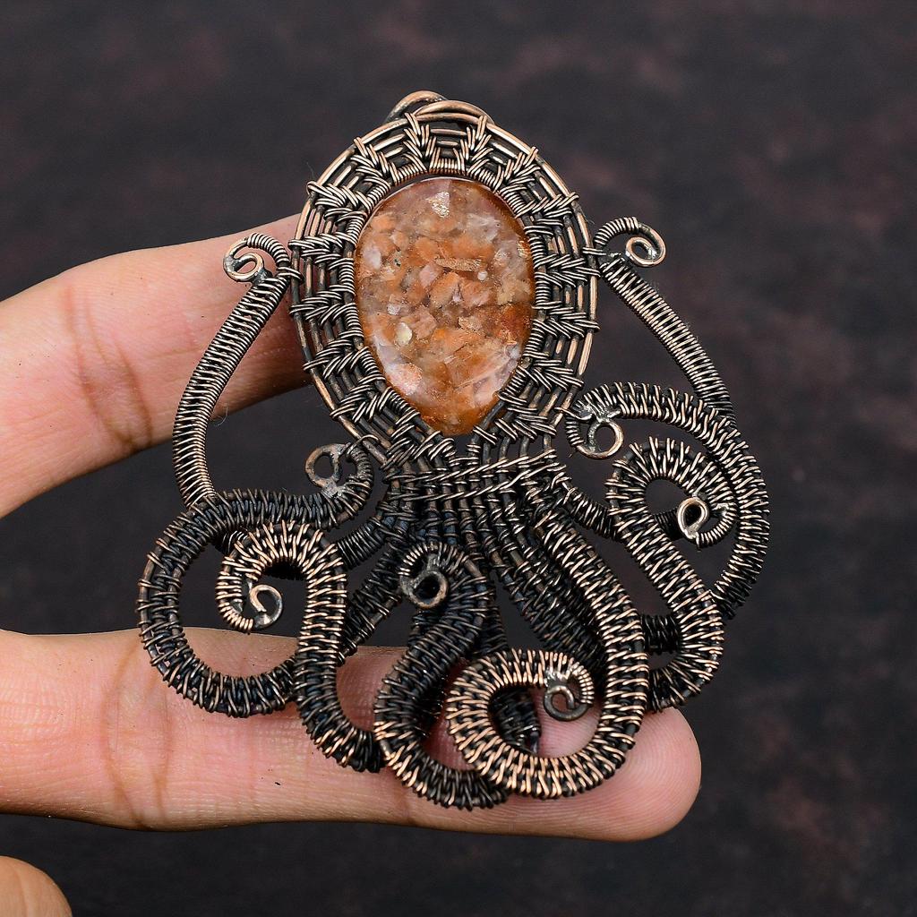 Sunstone Pendant Copper Wire Wrapped Pendant Natural Gemstone Jewelry Octopus Pendant Handmade Pendant Copper Wire Wrap Jewelry Gift For Her