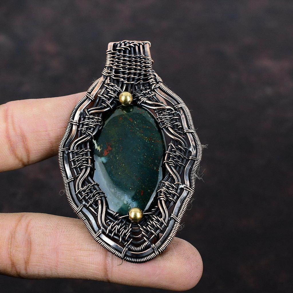 Bloodstone Pendant Copper Wire Wrapped Pendant Beautiful Copper Jewelry Handmade Pendant Wire Wrapped Jewelry Gift For Her Gemstone Pendant