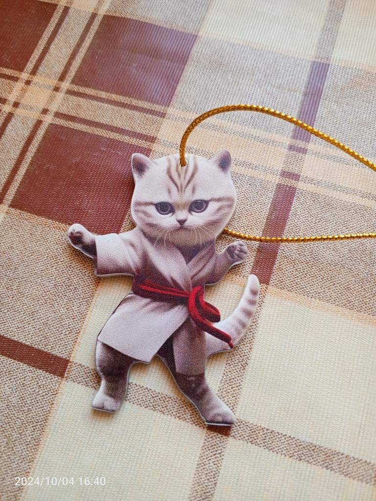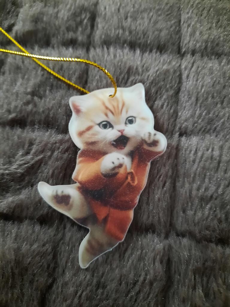 New Plane 2D Christmas Creative Kung Fu Cat Christmas Home Car Pendant Christmas Tree Decorations Acrylic Flat Pendant Wallet Pendant
