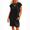Summer Round Neck Pocket Short Sleeve Dress Women Elegant Loose A Line Pink Short Dress Woman Solid Vintage Casual Party Dresses 24496