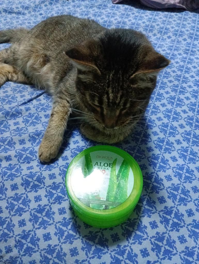 Good gel, consistency of cream, with fragrance, feels the same as the one in the leaf jar, but the one in the leaf jar is a straight gel, thick, holds its shape and smells of raw aloe.