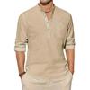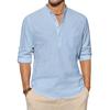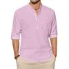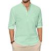 Cotton Linen Shirts for Men Casual Shirts Lightweight Long Sleeve Henley T Shirt Solid Color Long Sleeve Tops Roll Up