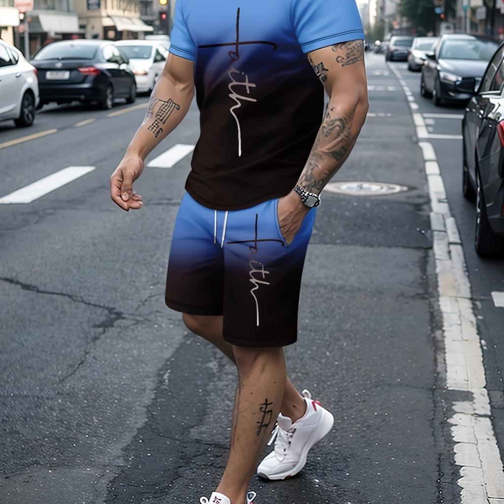 2-Pack Mens Summer Sportswear Set - Bold Color Block Tee & Drawstring Shorts with Pockets for a Stylish, Comfortable Casual Look