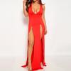Fashion Women Solid Sexy V-neck Sleeveless Open Fork Night-club Long Dress
