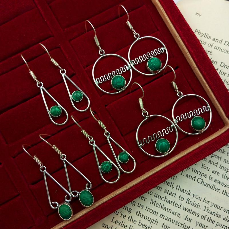 Malachite Gemstone 925 Sterling Silver Plated WOW 10 Pairs Earrings MY-10