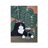 Abstract Green Plant Flower Black Cat Wall Art Canvas Painting Funny Posters And Prints Wall Pictures For Boho Living Room Decor