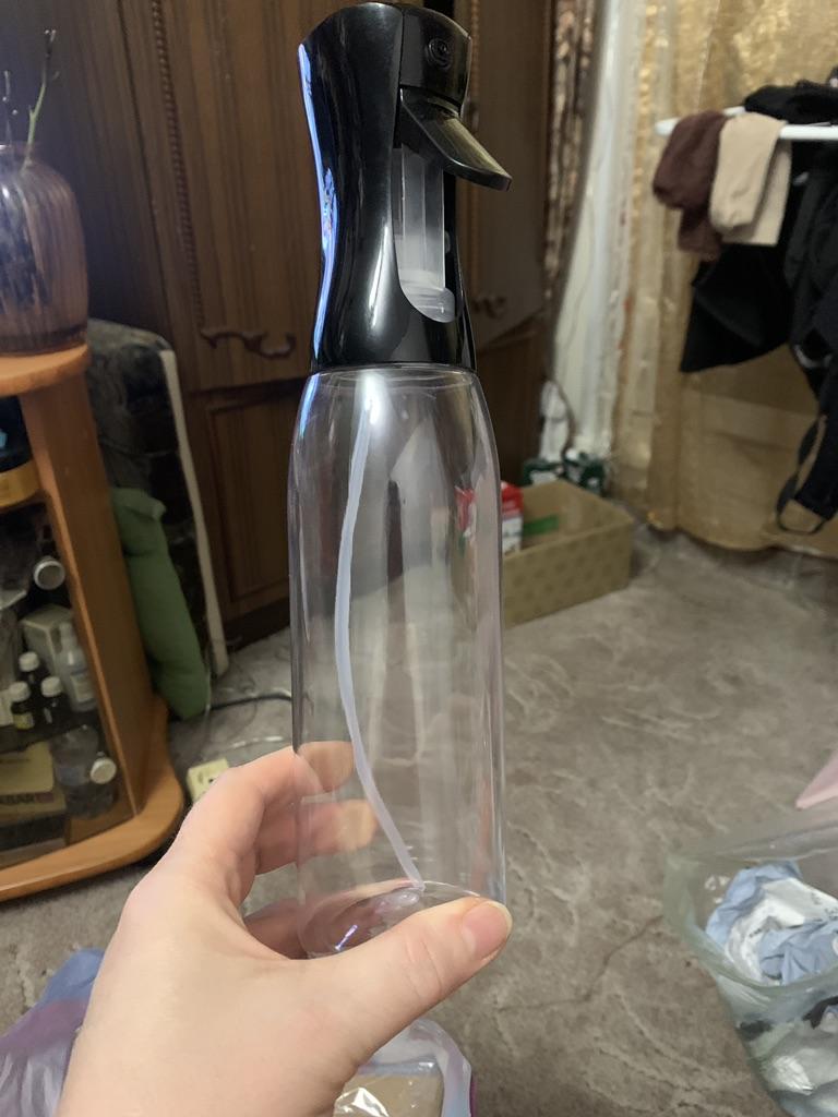 Spray bottle The volume is 300 ml. Cover color: black. Material: plastic. The seller also has dies of 200 ml and 500 ml. This is not my first purchase of such a bottle. The bottle is very convenient. Sprays the liquid in a dense cloud. So this bottle can be used not only in the kitchen for cooking, but also for plant care. Well, it can be used more for spraying cosmetics on the body and hair ☺️ The atomizer sprays well oil, vinegar, juice, wine and, of course, water 💦 If necessary, the bottle can always be untwisted and washed in warm water with detergent 🚿 A good, convenient bottle. If the review was useful, put it as a favorite ❤️ I received the goods in 23 days in a combined parcel 🚚, The track was tracked completely. The arrival at the point of issue was announced by sms 📲. Packaging: bubble bag. The product is free of defects and foreign smell. Happy shopping and fast deliveries to everyone 🛍️ ☺️🚀🍁 Comfort and well-being to you and your families 🏡 ❤️ PS: Need promo codes? Then be sure to visit my Telegram channel Olena.joom.thebest (t.me/olenajoom), where I regularly publish promo codes to make your purchases even more profitable 😘🛍️
