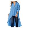 Elevate your wardrobe with this must-have Women's Shirt, designed for a chic and relaxed style that flatters all body shapes. Crafted in a solid color with lapels and long sleeves, this shirt features an elegant irregular hem, shorter in the front and longer in the back, adding a touch of sophistication to your look.