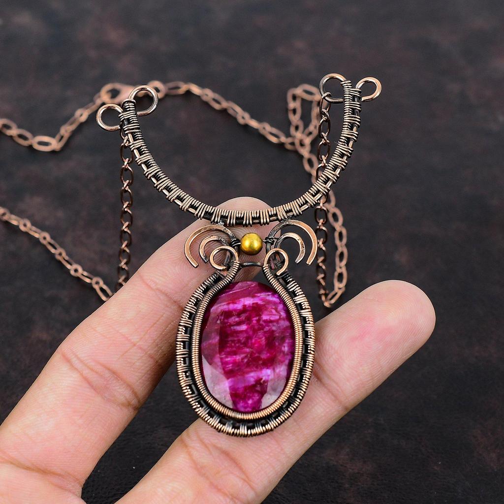 Faceted Kashmir Ruby Gemstone Necklace Copper Wire Wrapped Jewelry Adjustable Necklace Handmade Copper Wire Wrapped Necklace Engagement Gift