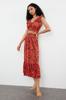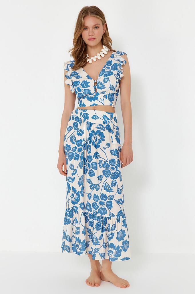 Women's Style Bottom-Top Set Clothes Floral Patterned Woven Flounce Blouse Skirt Set
