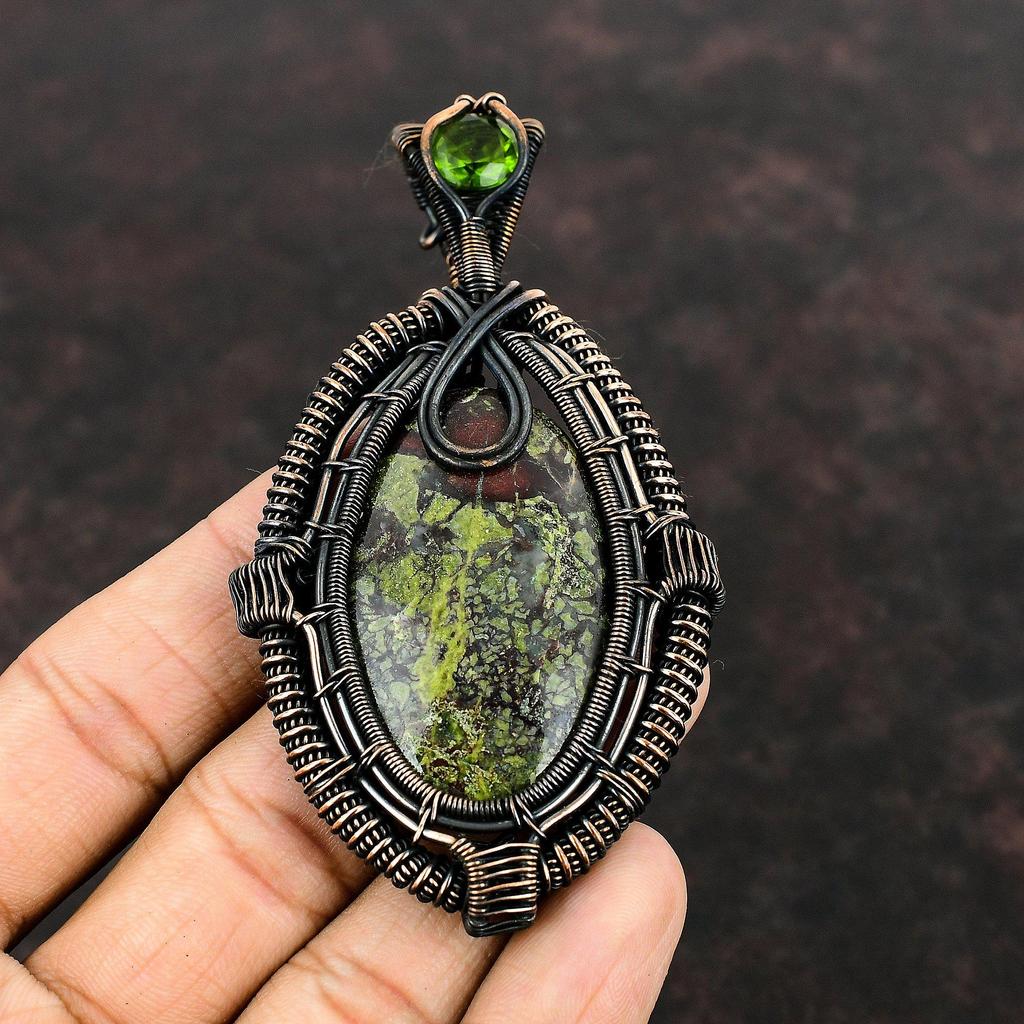 Dragon Bloodstone Pendant Copper Wire Wrapped Pendant Peridot Pendant Gemstone Copper Jewelry Gift For Mother Handmade Pendant Wire Jewelry
