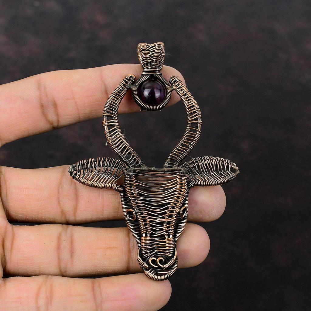 African Amethyst Pendant Copper Wire Wrapped Jewelry Bull Face Gemstone Pendant Copper Pendants Handmade Jewelry Wire Wrap Pendant For Gift