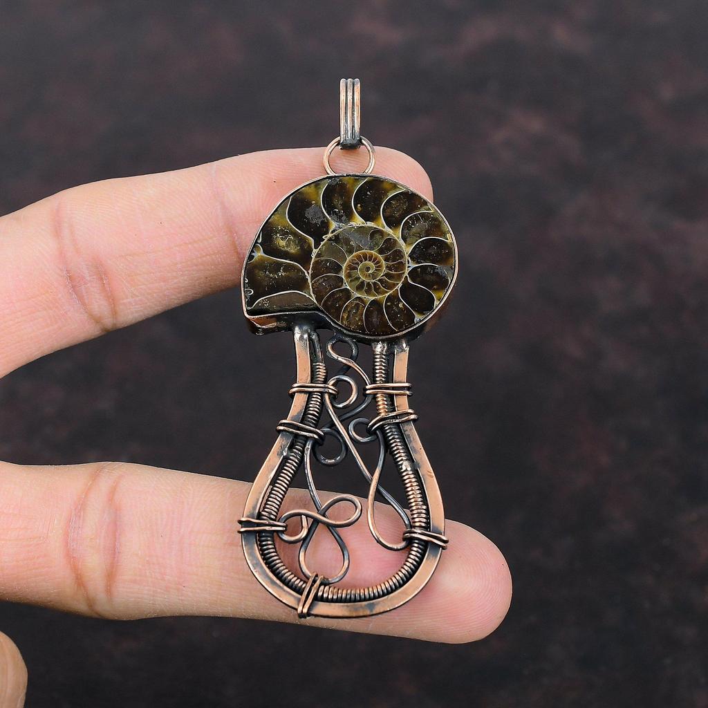 Ammonite Fossil Copper Pendant Copper Wire Wrapped Jewelry Handmade Pendant Top Quality Gemstone Jewelry Wire Wrapped Pendant Gift For Him