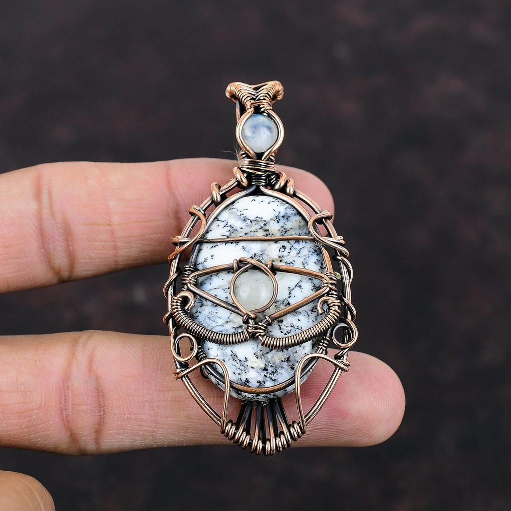 Evil Eye Dendrite Opal Pendant Copper Wire Wrapped Pendant Rainbow Moonstone Pendant Gemstone Jewelry Gift For Mom Handmade Evil Eye Jewelry