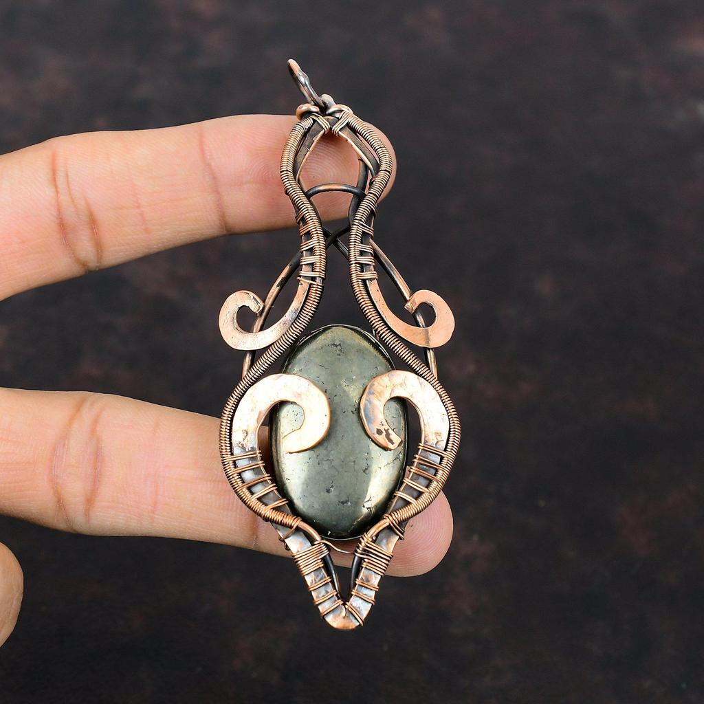 Pyrite Copper Pendant Copper Wire Wrapped Jewelry Handmade Boho Pendant Natural Pyrite Jewelry Gemstone Pendant For Gift Copper Wire Pendant