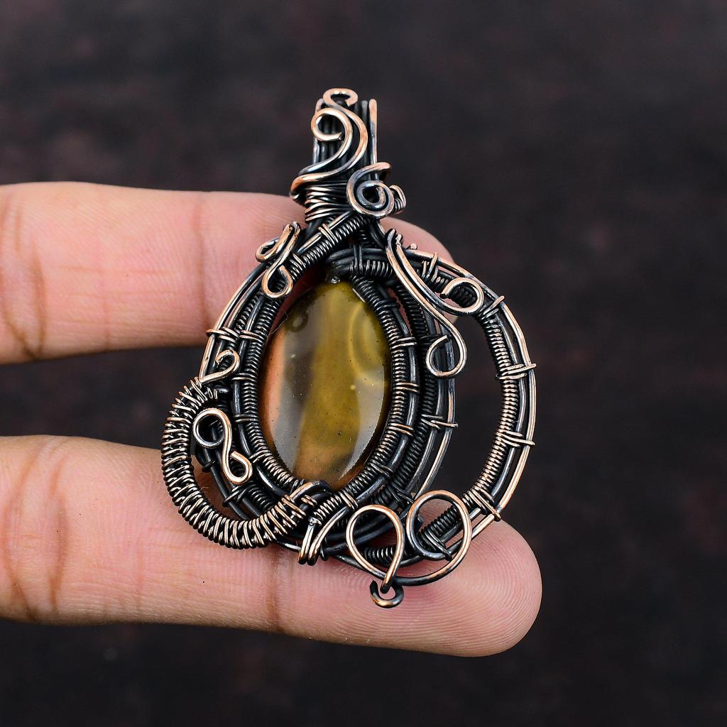 Polychrome Jasper Pendant Copper Wire Wrapped Pendant Handmade Gemstone Pendant Unique Copper Design Jewelry Gift For Him Brand New Pendant