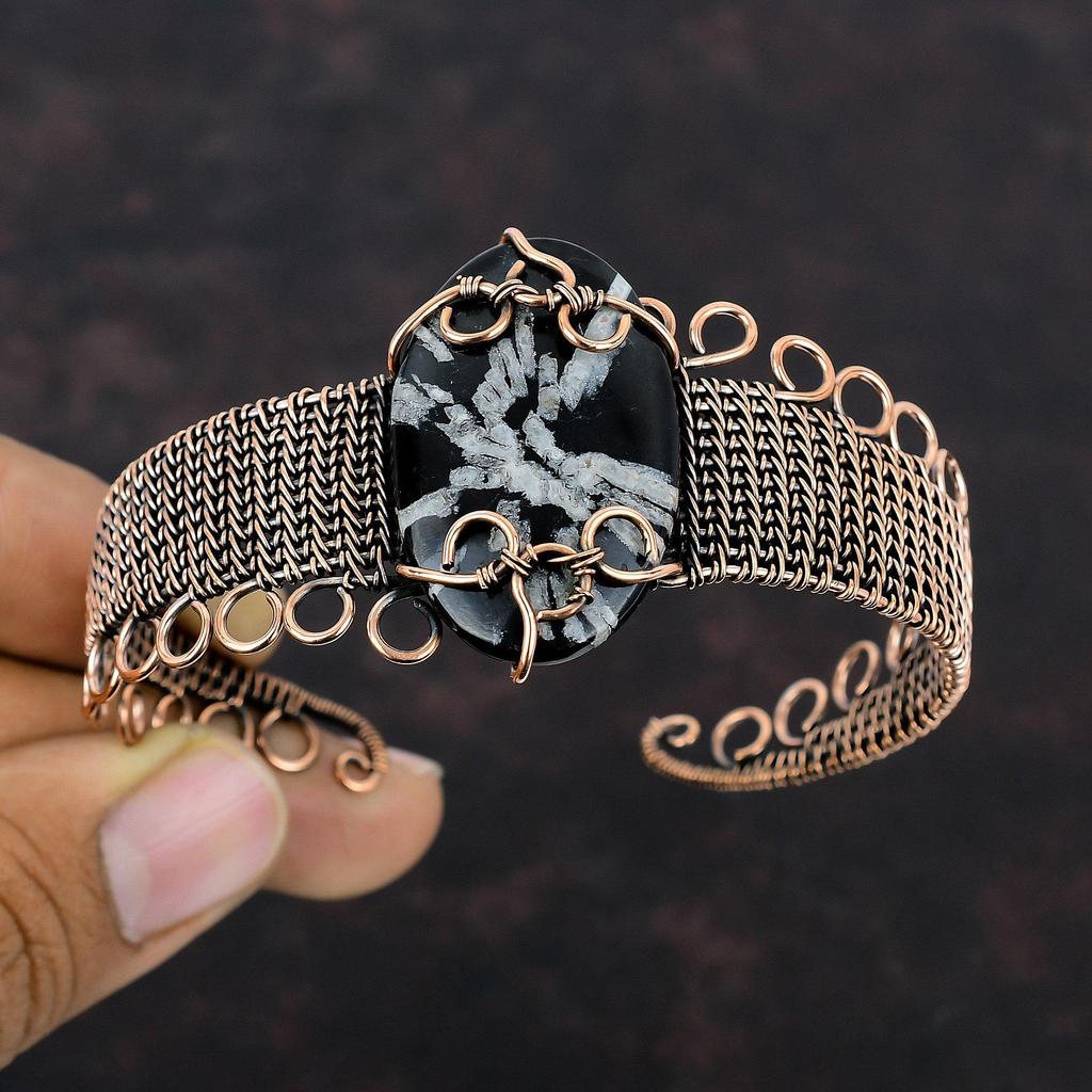 Chrysanthemum Cuff Bracelet Copper Wire Wrapped Adjustable Bangle Handmade Bangle Copper Wire Jewelry Original Gemstone Bangle Gift For Him