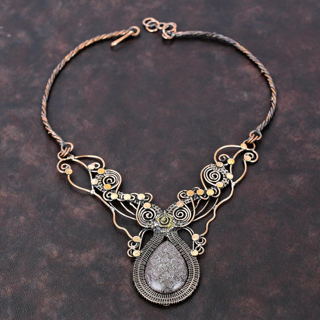 Dinosaur Bone Necklace Copper Wire Wrapped Necklace Gemstone Copper Jewelry Adjustable Necklace Handmade Birthstone Jewelry Anniversary Gift