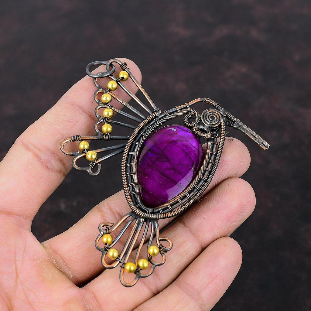 Purple Fire Labradorite Pendant Copper Wire Wrapped Gemstone Pendant Bird Jewelry Latest Design Pendant Handmade Copper Jewelry Gift For Mom