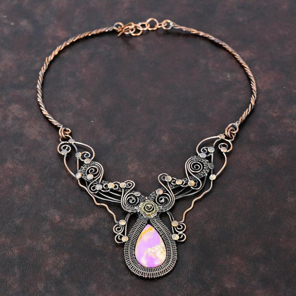 Phosphosiderite Necklace Copper Wire Wrapped Gemstone Necklace Adjustable Necklace Phosphosiderite Copper Jewelry Handmade Necklace For Gift