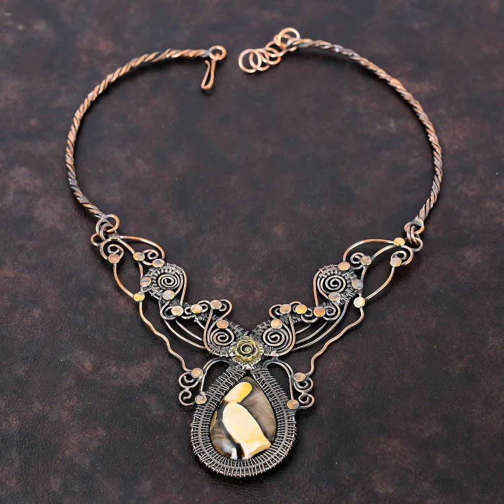 Peanut Wood Jasper Necklace Copper Wire Wrapped Gemstone Necklace Adjustable Necklace Copper Jewelry Handmade Necklace Wire Jewelry For Gift