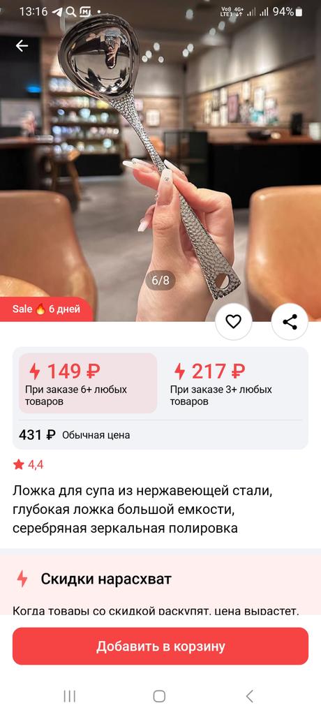 We chose at one price, but the order was placed for a higher price. The spoon bends and does not shine. The quality leaves much to be desired. I am not delighted. It looks better in the photo.