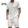 A versatile men's two-piece sportswear set featuring a short-sleeved top and elastic-waisted shorts, designed with practicality and style in mind. The jogging suit includes convenient pockets and adjustable drawstrings for a personalized fit.