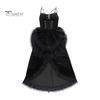 Sophisticated Details: Stand out in the crowd with the dark black color of this retro dress. The adjustable waistline straps, suspender neck style, and delicate ruffles and lace hem create a sophisticated look perfect for various occasions.