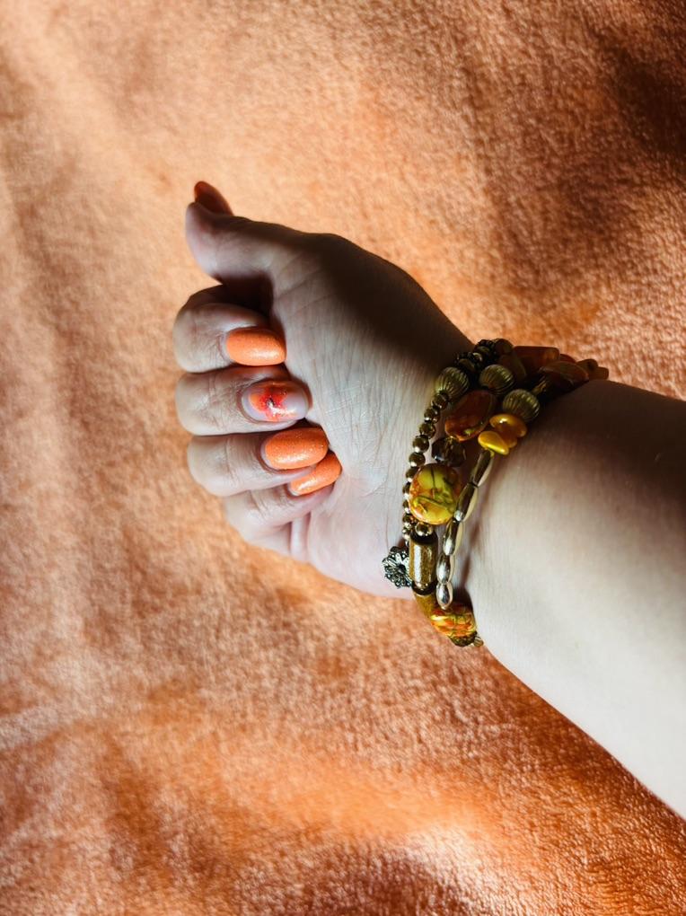 Very cute bracelet. Easy to put on this snake. Sunny, summer stones😊