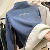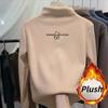 One-piece Flannelette Half-high Collar Bottom Shirt for Women's Autumn and Winter Style Plush Thickened Warm Lining Long-sleeved Top