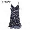 WTEMPO Dress Floral Chiffon Sling Dress Female Student Summer Stitching Ruffle V-neck Fishtail