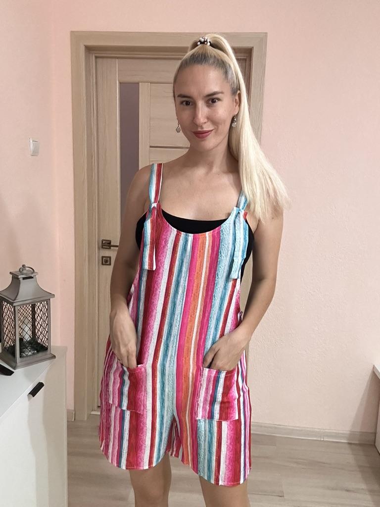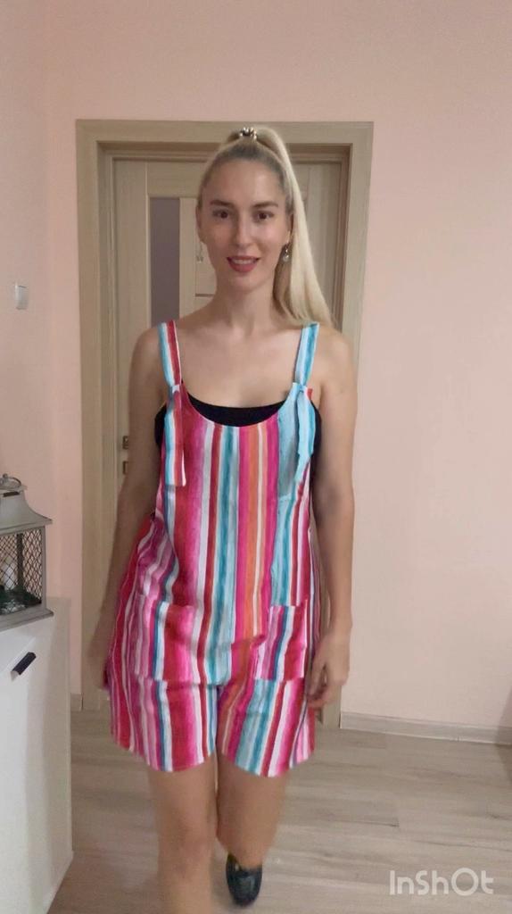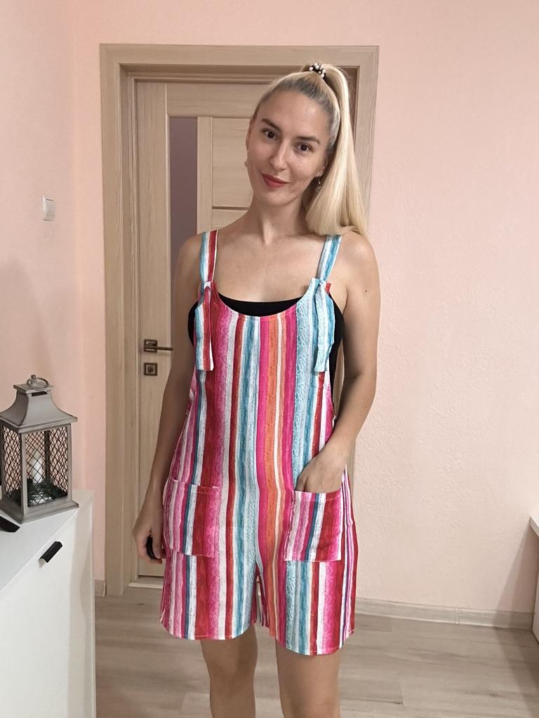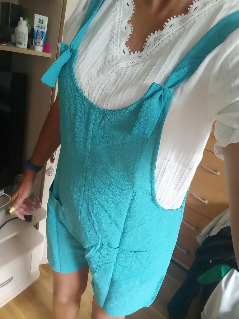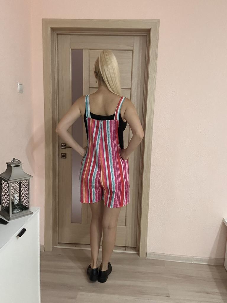 A great summer jumpsuit The seller has different colors to choose from. The fabric is light and pleasant to the body. Sewn beautifully and neatly. There are two pockets. Laces on overalls without buttons simply seep into the hole. I wear size S. My chest size is 92 cm and my hip size is 92 cm. Great product and good price 🔥
