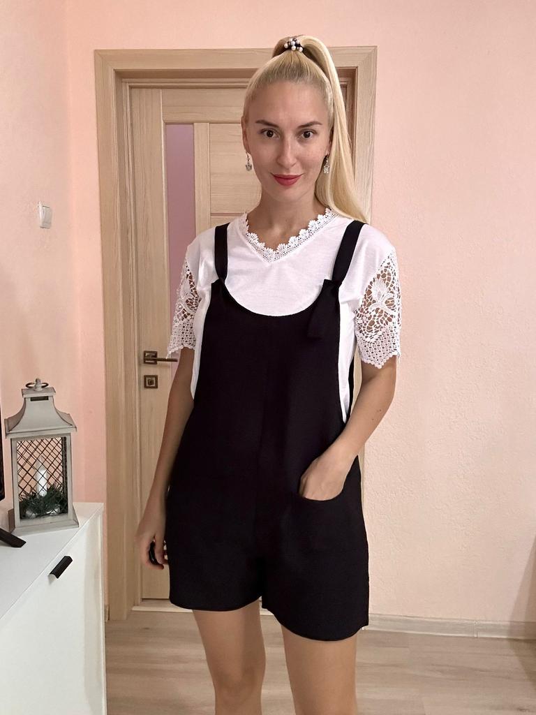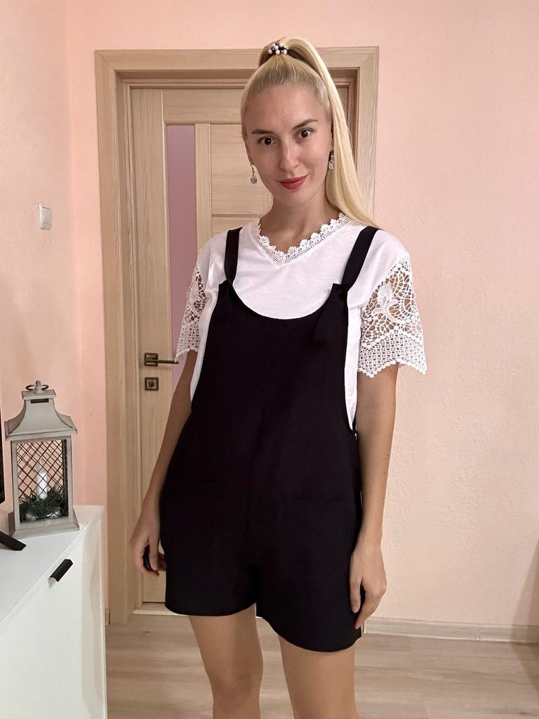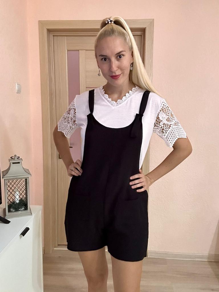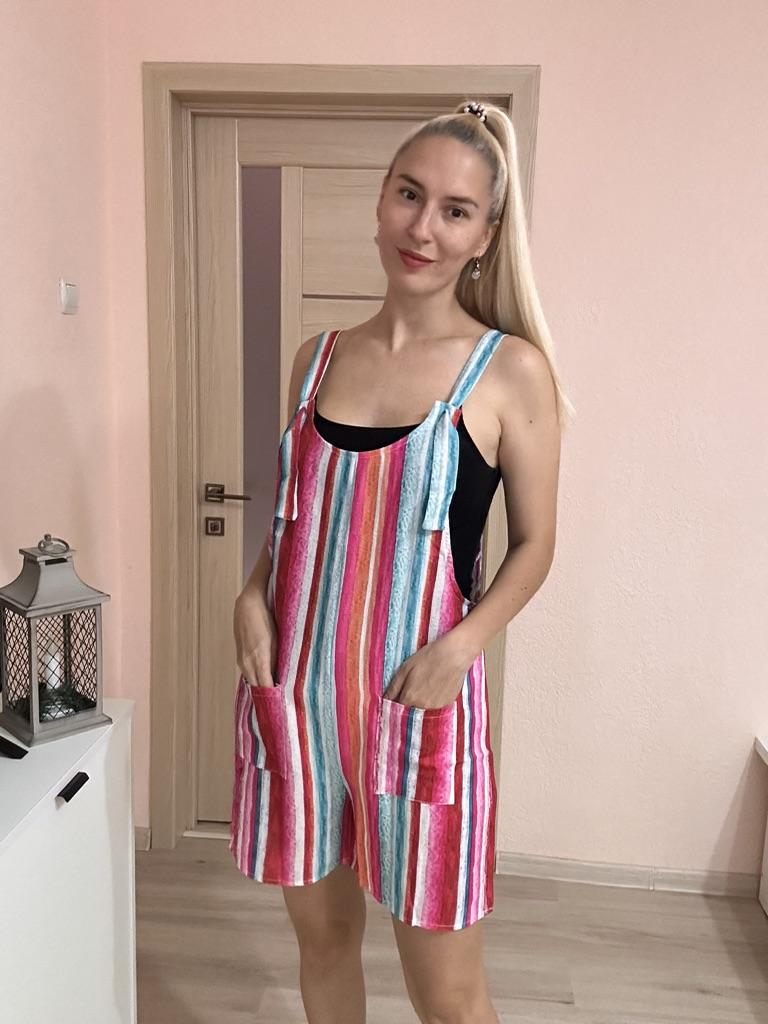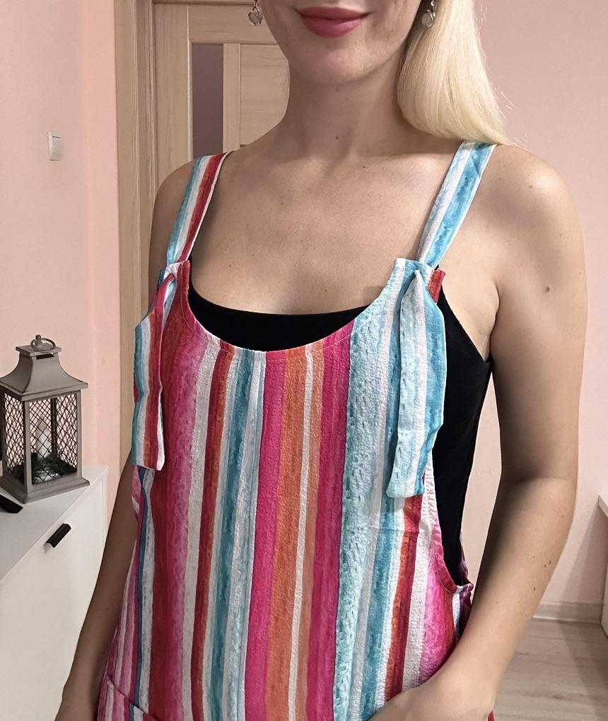 A great summer jumpsuit The seller has different colors to choose from. The fabric is light and pleasant to the body. Sewn beautifully and neatly. There are two pockets. Laces on overalls without buttons simply seep into the hole. I wear size S. My chest size is 92 cm and my hip size is 92 cm. Great product and good price 🔥
