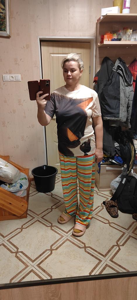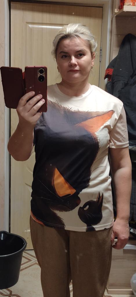The t-shirt is thick, the print is bright, long. It didn't lose its shape after washing.