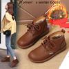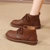 Women’s Classic Oxfords Boots Flats Black Leather Student Booties for Girl Motorcycle Ankle Boots Winter Boots