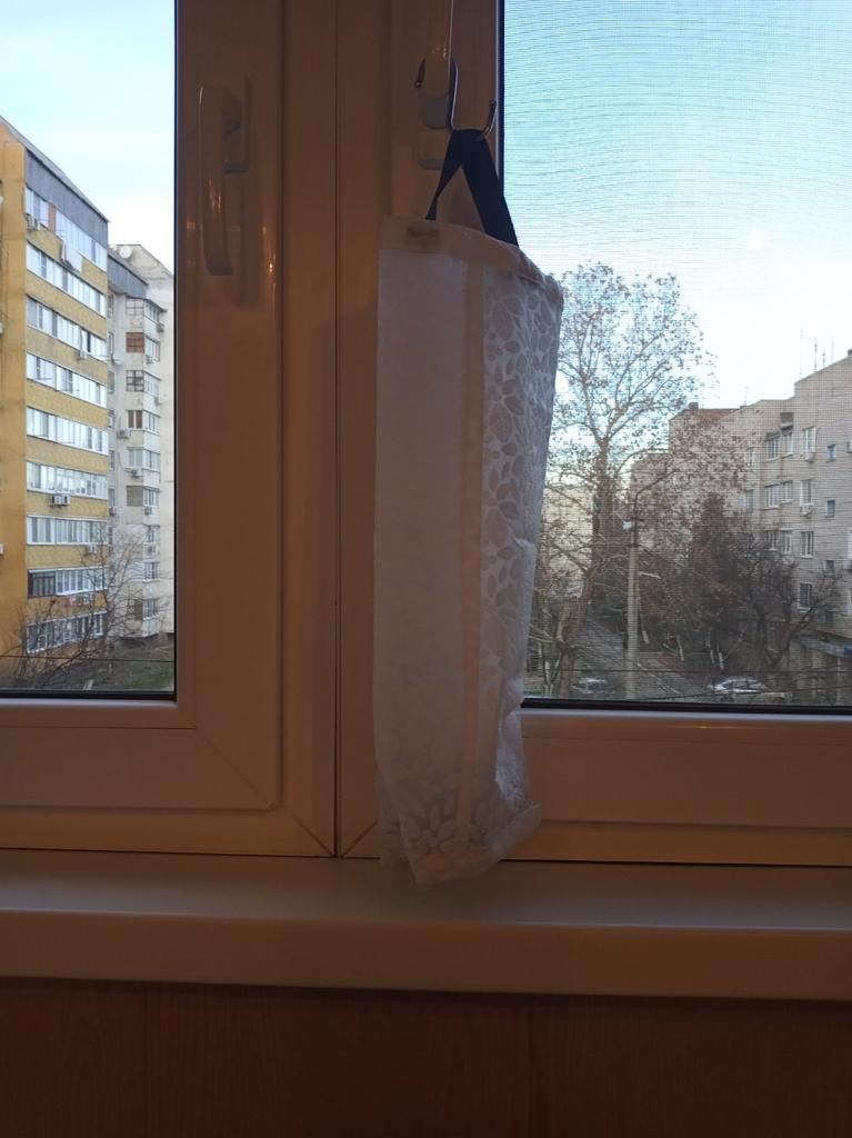 Everything is great, but you need to tie it additionally, otherwise the bag falls off when used, I tied it to the radiator to the pipe, but it does not look aesthetically pleasing, a T-shirt is suitable for bags, thicker ones do not fit, it is difficult to push in, and you canโt get it from below, perhaps because of the size