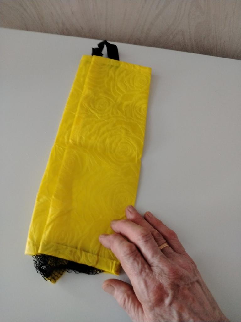 A very convenient device for storing simple cellophane bags, whether for breakfast, for trash, for storing food