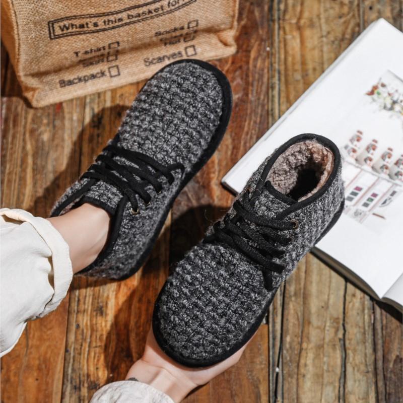 Johnature Casual Women's Short Boots Plush Warm Cotton Shoes Handmade Soft Sole Lace-up Cloth Shoes