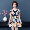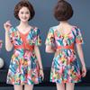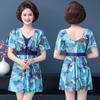 Large Size Middle Aged Women Two Pieces Modest Swimsuit Printed Drawstring Swim Dress Boyshorts Swimwear Set Short Sleeves Hot Spring Bathing Suit