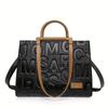 Luxury Leather Tote Bag, Large Capacity Handbag, Letter Embossed Shoulder Bag, Purse For Women