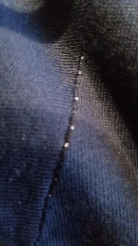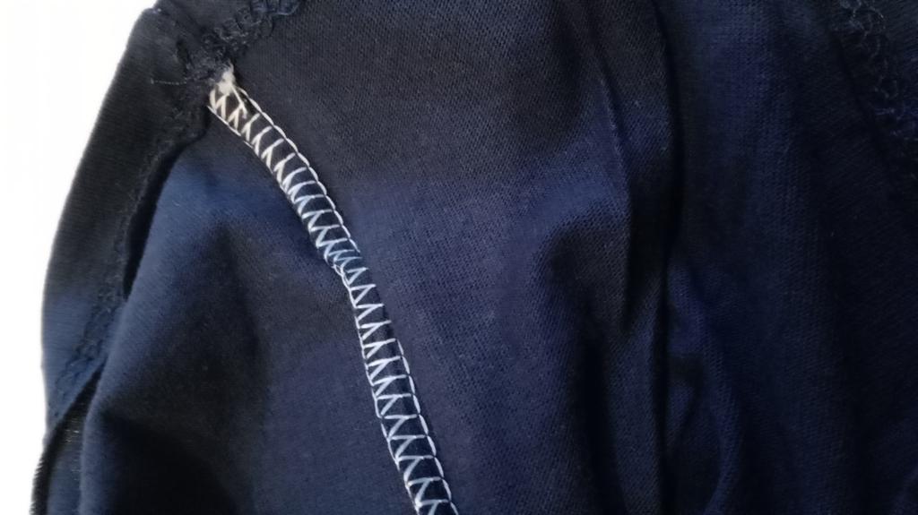The t-shirt is dark, but it is sewn with white thread.