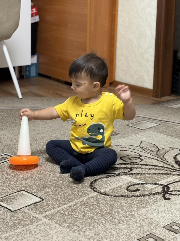 I chose a t-shirt with buttons. So that the head with bows passes through normally. And so that the t-shirt doesn't stretch.. And what as a result.