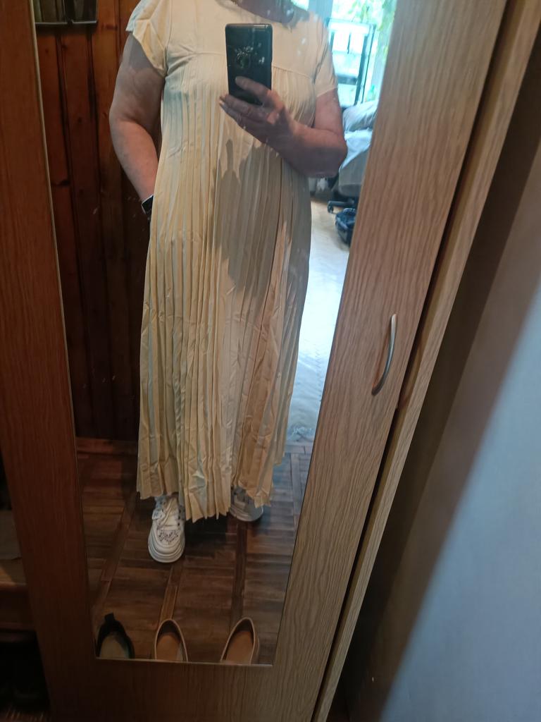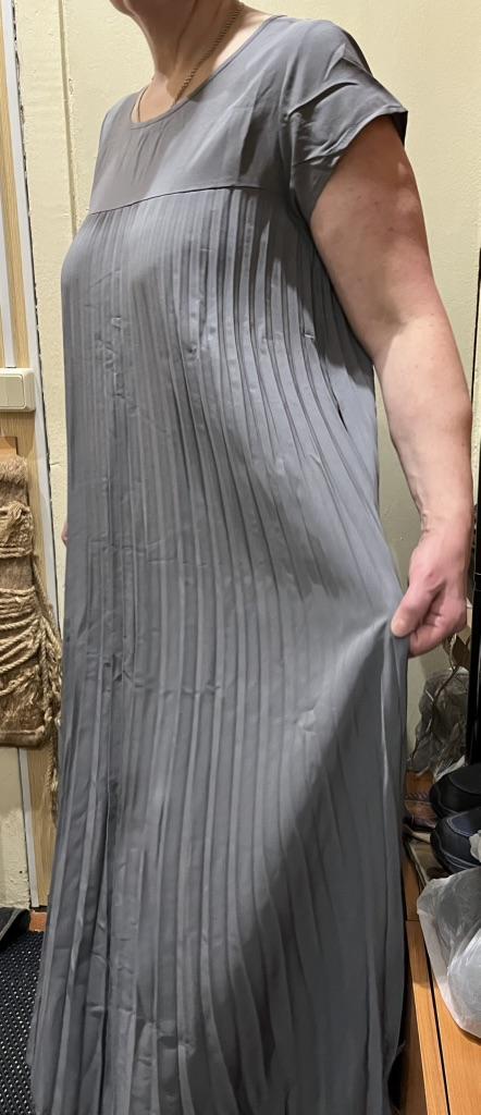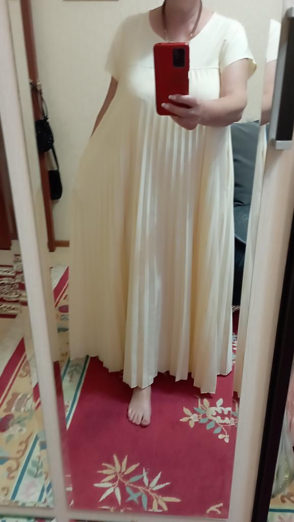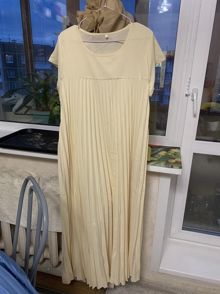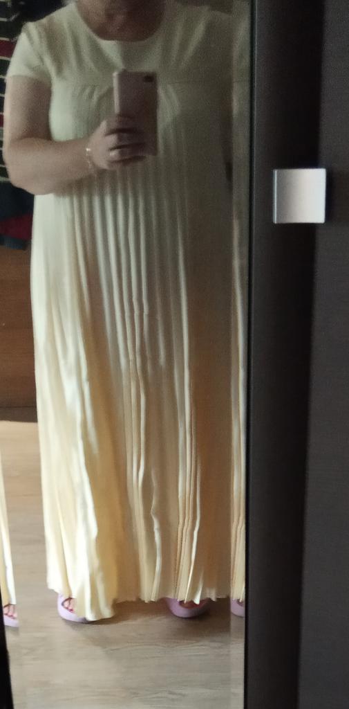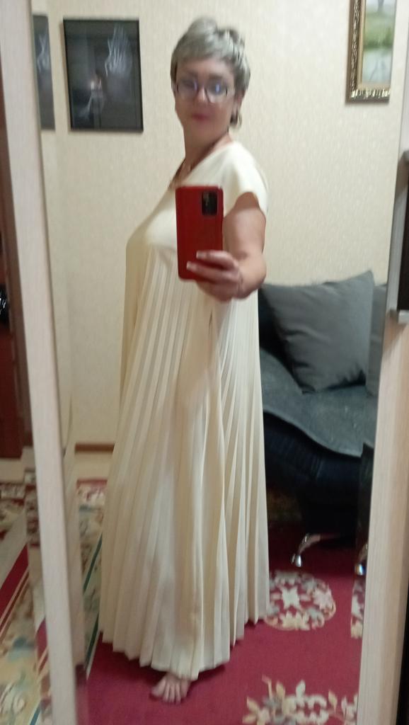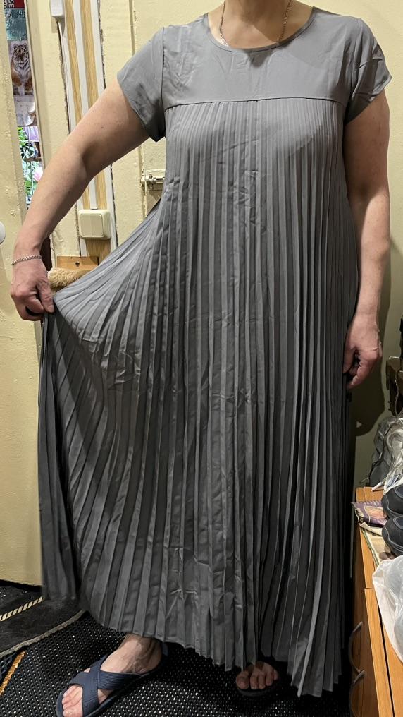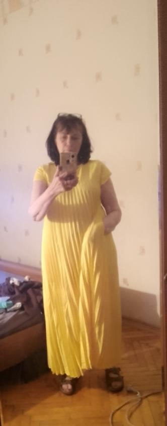 The dress is beautiful. Delicate. A little bit translucent. But because of the large pleated volume it is not noticeable. 👍👍👍Super for the summer! Thank you very much. I wear size 50. Exactly the size👍